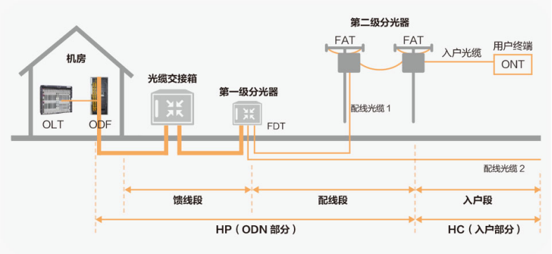 兩級分光器之間以及第二級分光器到ONT的光纜數(shù)量是確定的,因此,其距離越短越好。