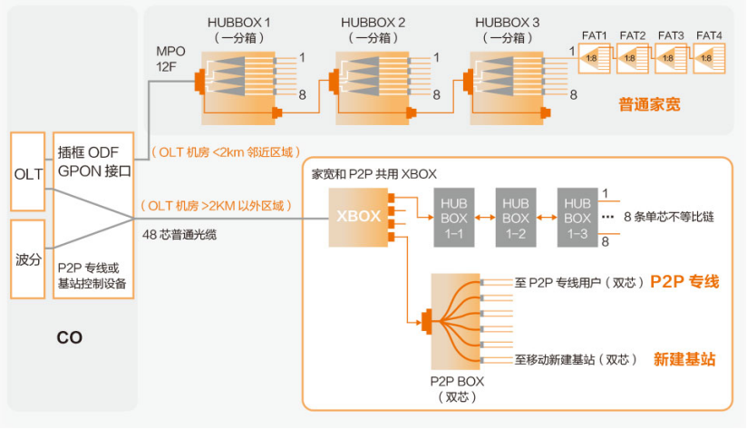 通過ODN 3.0解決方案提供的P2P BOX可以直接輸出雙芯光纜到P2P專線用戶和移動基站,特別適合綜合運營商進行網(wǎng)絡布局和充分利用骨干光纜資源。